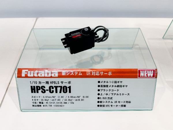 Futaba/O.S.ブースとして共同出展。Futabaブースでは新製品のURモード対応のHPS-CT701をはじめ、