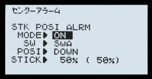 ●スティックアラーム:スロットルスティックの指定位置でピッっとアラームを鳴らすことができます。