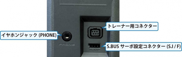 ●トレーナーコネクター、イヤホンジャック(3.5mm ステレオミニプラグに対応)、S.IFコネクター:S.IFコネクターは S.BUS サーボやテレメトリーセンサーの設定に使用します。