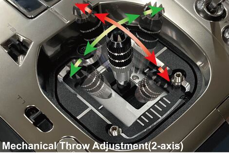 ●メカニカル・ストローク調整機構:機械的な操作ストローク調整が2軸とも可能です。調整用スクリューを上面に配置しましたので、簡単にベストな状態にセットできます。